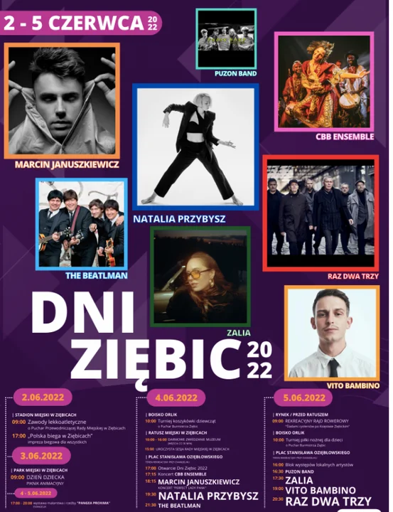 Od najbliższego czwartku, 2 czerwca będziemy świętować Dni Ziębic. Na mieszkańców czeka moc atrakcji i koncerty gwiazd. Wśród wykonawców m.in. zespół Raz Dwa Trzy i Natalia Przybysz.
