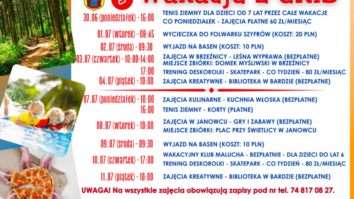 - 2 i 9 lipca – wyjazd na basen (koszt: 10 zł)