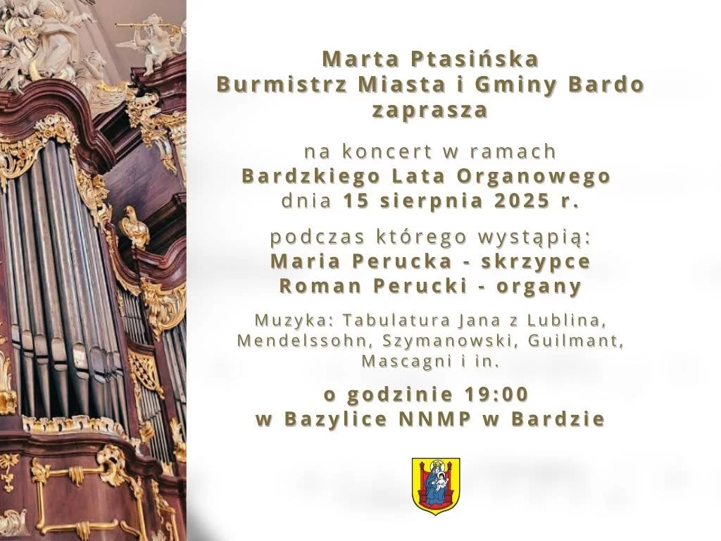 Miłośnicy muzyki klasycznej będą mieli okazję spędzić niezapomniany wieczór w niezwykłej scenerii Bardzkiej Bazyliki. W programie koncertu znajdą się m.in. dzieła Szymanowskiego, Tabulatura Jana z Lublina, Mendelssohna, Guilmanta i Mascagniego.