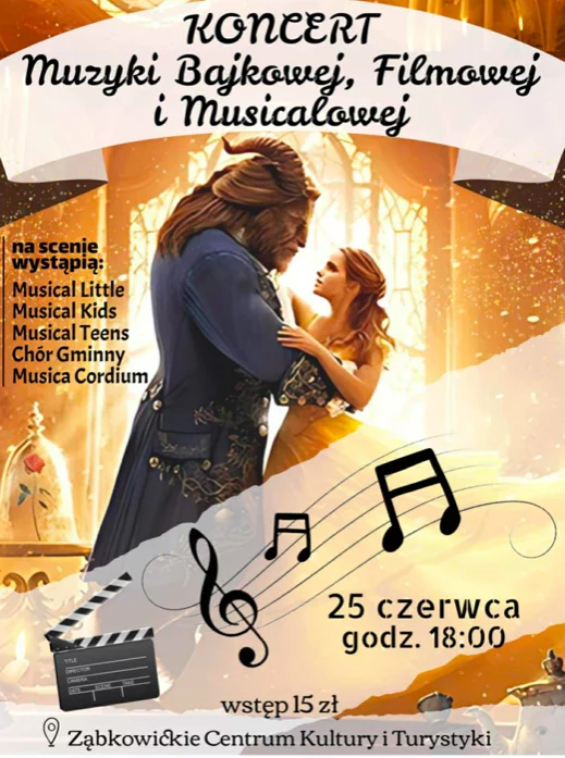 Już 25 czerwca o godzinie 18:00 w Ząbkowickim Centrum Kultury i Turystyki odbędzie się wyjątkowe wydarzenie muzyczne – Koncert Muzyki Bajkowej, Filmowej i Musicalowej. To doskonała okazja, aby przenieść się w świat magii, wzruszeń i niesamowitych dźwięków znanych z ekranów kin oraz scen musicalowych.