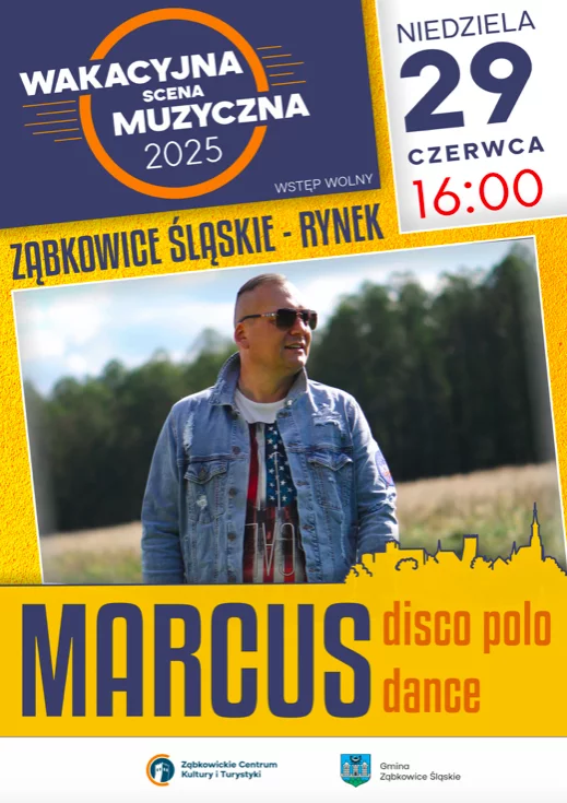 Ząbkowice Śląskie szykują się na kolejną muzyczną ucztę! Już w najbliższą niedzielę, 29 czerwca o godz. 16:00, na Wakacyjnej Scenie Muzycznej w Rynku wystąpi zespół Marcus – znany i ceniony wykonawca nurtu disco polo dance. Wydarzenie organizowane przez Ząbkowickie Centrum Kultury i Turystyki oraz Gminę Ząbkowice Śląskie odbędzie się z bezpłatnym wstępem dla wszystkich mieszkańców i turystów.