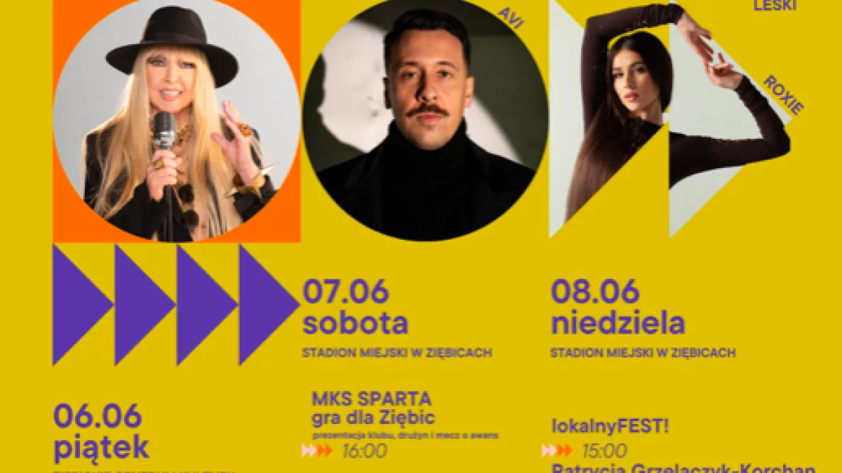 8 czerwca (niedziela) upłynie pod znakiem koncertów na Stadionie Miejskim. Już od 15:00 rusza lokalnyFEST!, w ramach którego wystąpią: Patrycja Grzelaczyk-Korchan z zespołem (godz. 16:30), Pan Savvan (godz. 17:30), Roxie (godz. 18:20) oraz AVI (godz. 19:30).