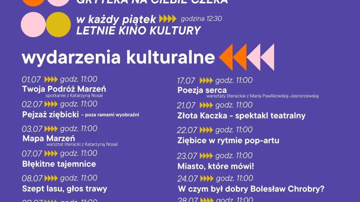 - Letnie Kino Kultury – w każdy piątek o 12:30