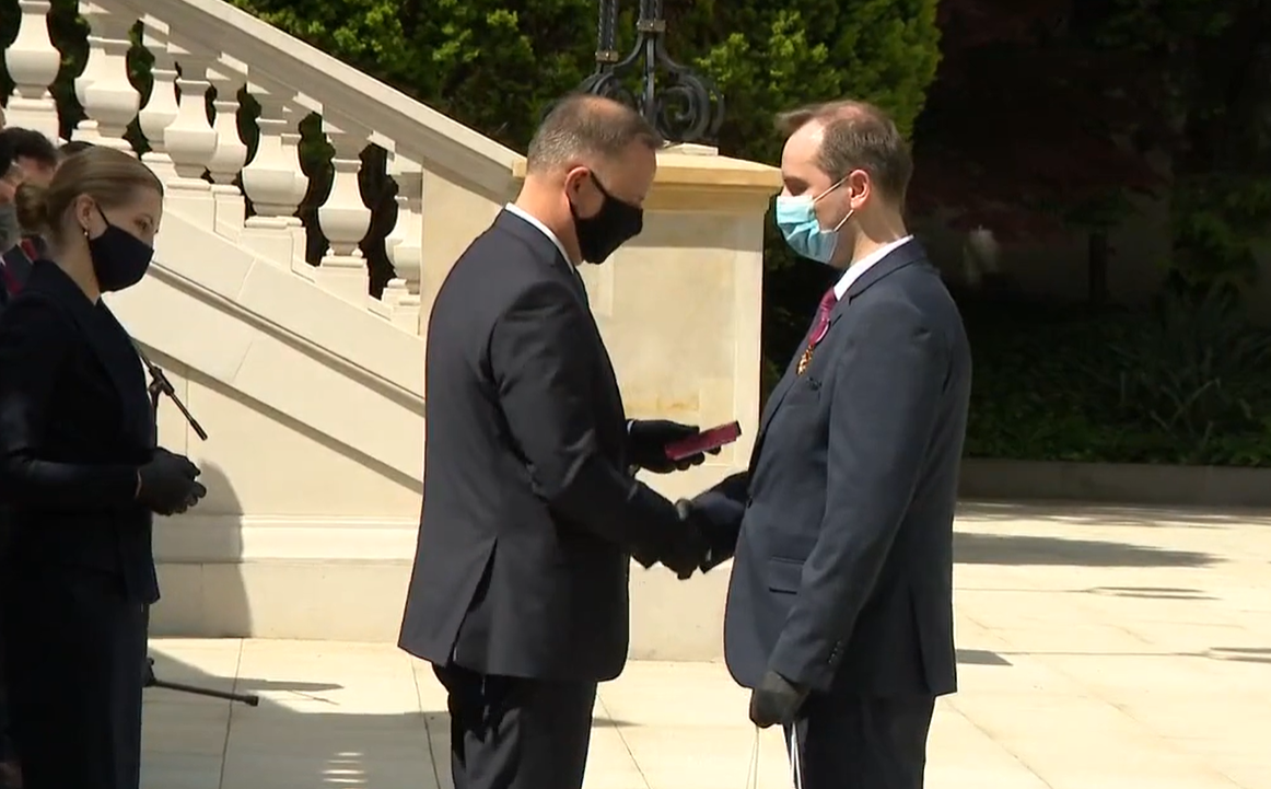 Kamieniec Ząbkowicki. Burmistrz Gminy Marcin Czerniec odebrał do rąk własnych odznaczenie prezydenta RP, Andrzeja Dudy.