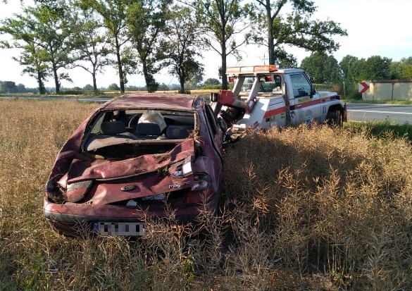 Z samego rana, przed godz. 6.45 na drodze wojewódzkiej Ząbkowice Śląskie - Dzierżoniów na wysokości Olbrachcic Wielkich, dachowało renault megane.