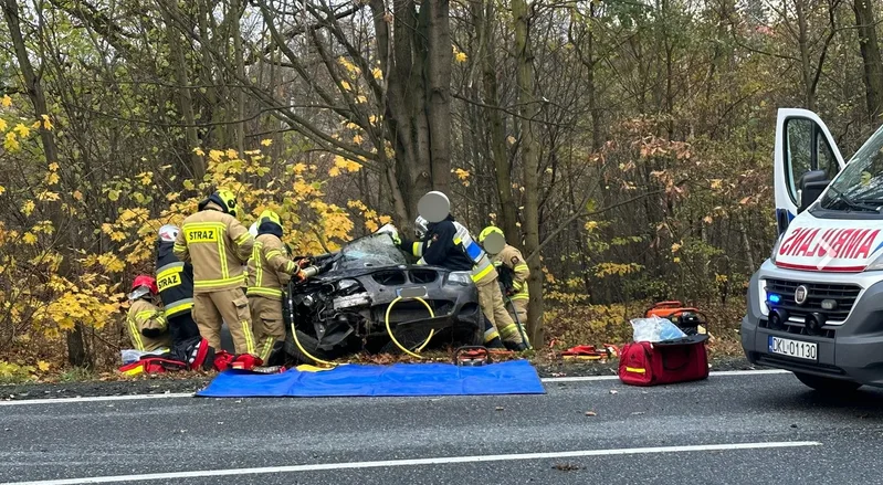 Na miejsce wezwano helikopter Lotniczego Pogotowia Ratunkowego. Niestety, kierowca BMW nie przeżył wypadku. Ze wstępnych ustaleń wynika, że 37-letni mężczyzna kierujący samochodem marki BMW na razie z nieustalonych przyczyn uderzył w jadący niemalże równolegle samochód Toyota, odbił się i uderzył w drzewo.