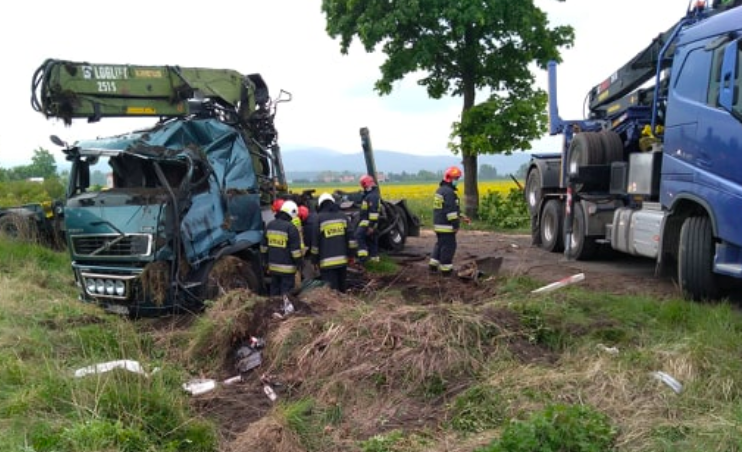 Do zdarzenia doszło w piątek, 15 maja, po godz. 9. Ciężarówka marki Volvo ścięła dwa drzewa i ostatecznie przewróciła się na drogę wojewódzką nr 390. Kierowca został przewieziony do szpitala. Wcześniej policja sprawdziła trzeźwość mężczyzny, nie był pod wpływem alkoholu.