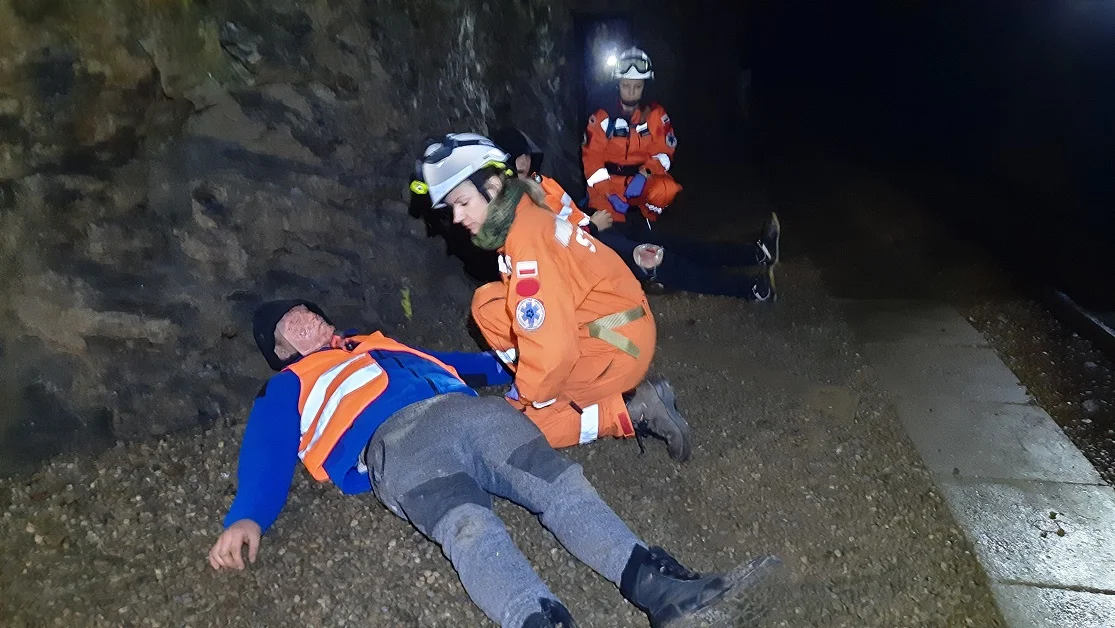Gdy ćwiczenia nabierają tempa, trwa rozpoznanie możliwych wejść, formowanie mieszanych zespołów ratowniczych, organizacja specjalistycznej łączności, która zadziała w szybach kopalni, organizacja punktu medycznego oraz zaplecza logistycznego dla ratowników. Dostęp do kopalni w niektórych punktach możliwy jest tylko przy użyciu technik alpinistycznych. Wejście do kopalni wymaga od każdego z zespołów odpowiedniego przygotowania oraz zabrania całej masy sprzętu który może okazać się niezbędny. Ratownicy przemieszczają się do wejść, quady z JRG Ząbkowice Śl. oraz OSP Złoty Stok transportują wyposażenie. Zespoły rozpoczynają działania, w ciemności przemieszczają się coraz bardziej w głąb kopalni odnajdując pierwszych poszkodowanych z całym wachlarzem urazów. Następnie rozpoczyna się ewakuacja na zewnątrz i przekazanie zespołowi odpowiedzialnemu za transport do punktu medycznego. Poszukiwanie zaginionych wspomagają psy ratownicze, które bezbłędnie odnajdują osoby poszkodowane.