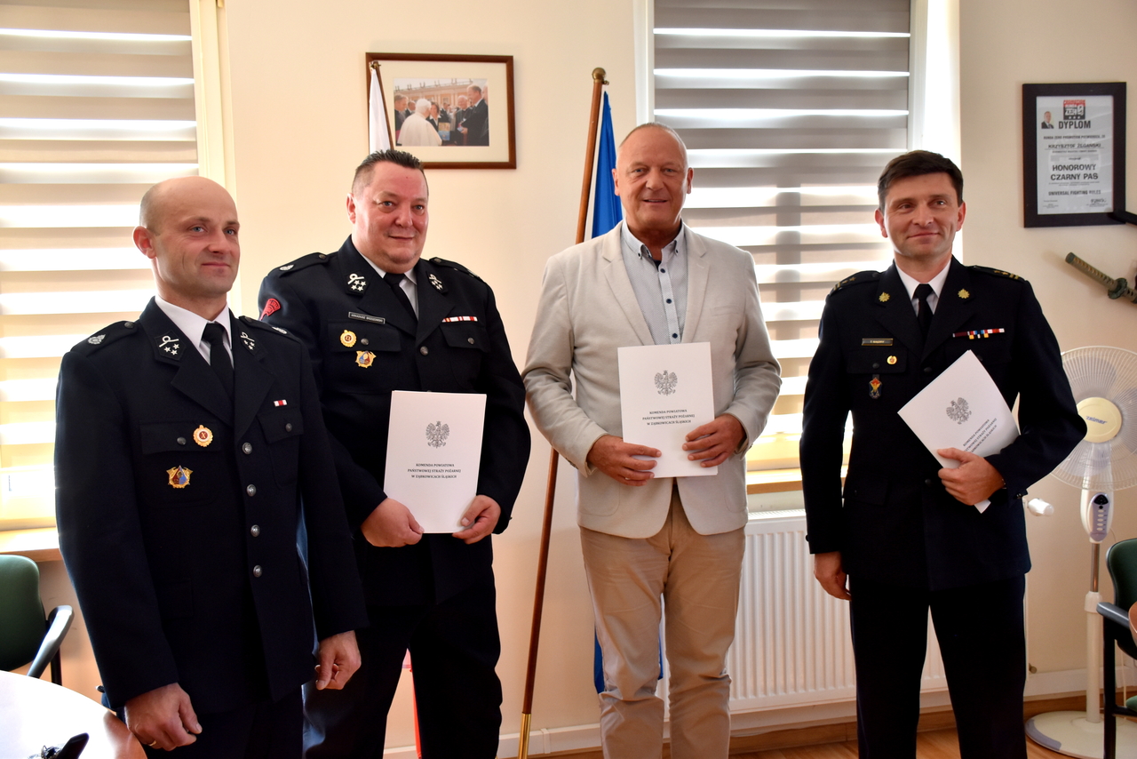 Gmina Bardo. Trójstronne porozumienie o włączeniu jednostki Ochotniczej Straży Pożarnej z Brzeźnicy do krajowego systemu ratowniczo- gaśniczego podpisali: Zastępca Komendanta Powiatowego Państwowej Straży Pożarnej - bryg. Tomasz Mądry, Burmistrz Miasta i Gminy Bardo - Krzysztof Żegański oraz Prezes OSP w Brzeźnicy - Arkadiusz Brzozowski i Naczelnik OSP w Brzeźnicy - Marcin Ostaszewski.