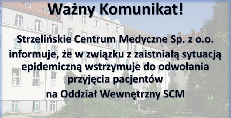 Strzelińskie Centrum Medyczne w związku z sytuacją epidemiczną wstrzymało przyjęcia pacjentów na oddział wewnętrzny.