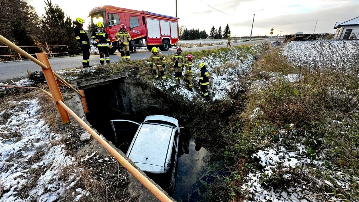 O godz. 8.15 na drodze pomiędzy Olbrachcicami Wielkimi a Tarnowem Fiat Panda wypadł z drogi i wpadł do cieku wodnego. Prowadzący auto 22-letni mężczyzna uskarżał się na ból miednicy, ale nie został odwieziony do szpitala.