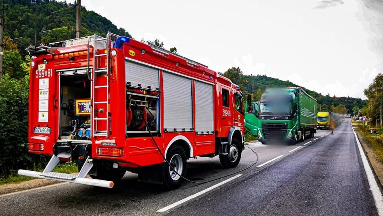 W środę, 20 września strażacy zostali wezwani do pożaru w Przyłęku, gdzie na DK8 zapaliły się okładziny klocków hamulcowych w Scanii. Pojazd stał na poboczu w stronę Ząbkowic Śląskich blokując jeden pas ruchu. Z przedniego koła wydobywał się dym, zarzewie ognia udało się ugasić gaśnicą proszkową. Zniszczeniu uległy elementu układu hamulcowego lewego koła. TIR-a gasili strażacy z OSP Przyłęk, OSP Brzeźnica i JRG Ząbkowice Śląskie.