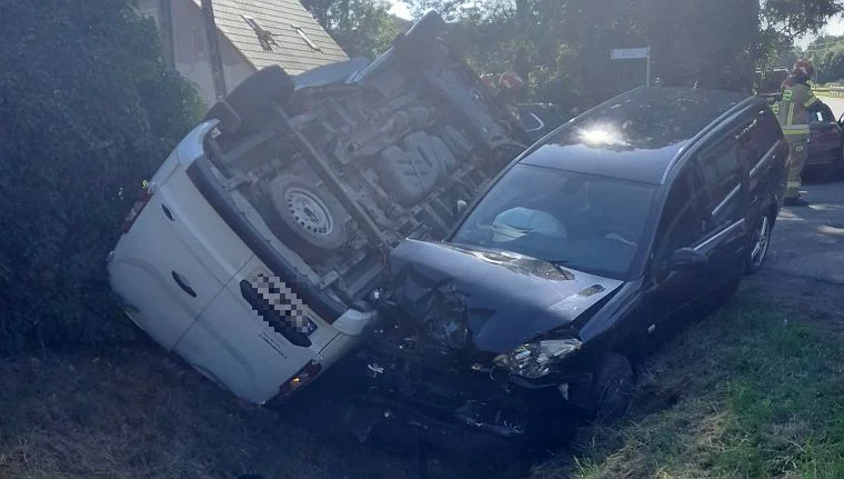 Do zdarzenia doszło we wtorek, 11 lipca, po godz. 9. Samochody po zderzeniu znalazły się w rowie, jeden na dachu. Autami podróżowały 3 osoby, przebadała je załoga karetki pogotowia. Nikt nie wymagał hospitalizacji.