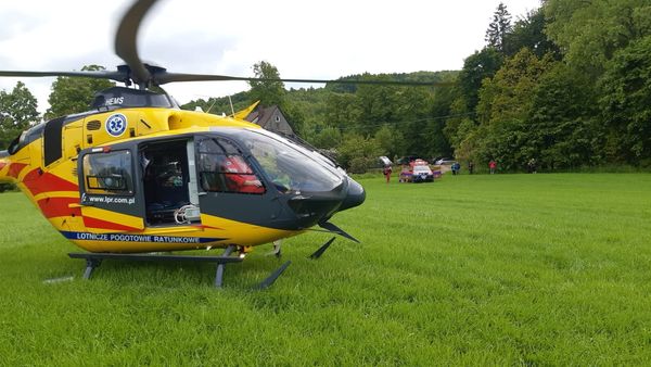 Przybyli na miejsce ratownicy podejrzewali uraz obojczyka, barku i kręgosłupa. Podjęto decyzję o zadysponowaniu Lotniczego Pogotowa Ratunkowego.