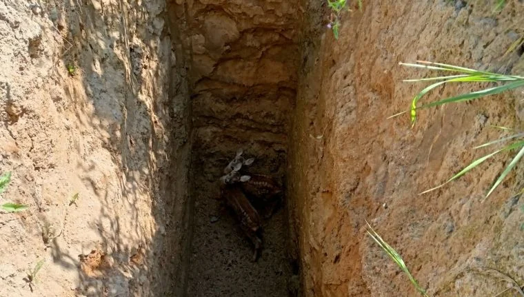 W dole znajdowały się dwie sarenki, których mama czekała nieopodal. Z powodu zagrożenia osunięcia się ziemi, działania były prowadzone z poziomu gruntu. Strażacy zbudowali podest z desek i opuścili go na dno wykopu. Przy pomocy pętli schwytali zwierzęta i zaciągnęli je na podest, a następnie konstrukcję wyciągnęli na powierzchnię.