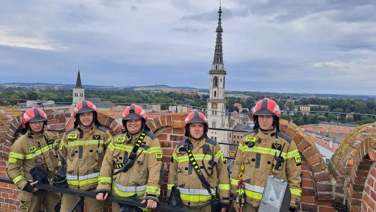 Aż dwa zastępy interweniowały dzień później, gdy alarm nadszedł z Krzywej Wieży. Stało się to w piąte, 22 września o godz. 15.32. Znów był to alarm fałszywy, ale strażacy dla spokoju sumienia sprawdzili cały obiekt. Weszli też na szczyt wieży.