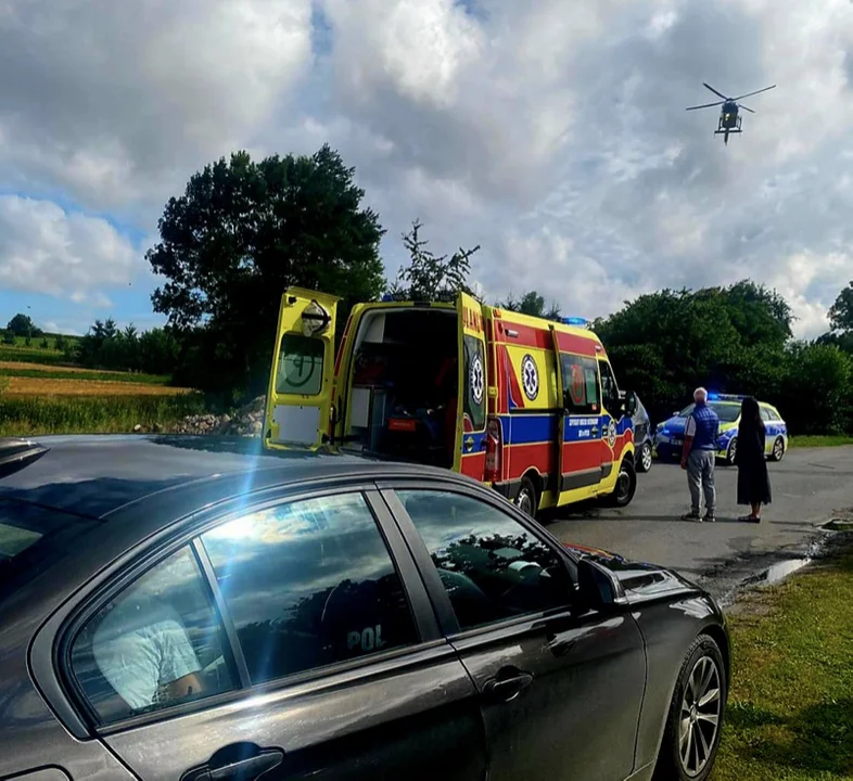 Poszkodowaną jest 70-letnia mieszkanka gminy Ziębice, która poruszała się prawidłowo. Na miejsce natychmiast wezwano służby ratunkowe. Kobiecie udzielono pomocy przedmedycznej, a następnie została przetransportowana śmigłowcem Lotniczego Pogotowia Ratunkowego do szpitala.