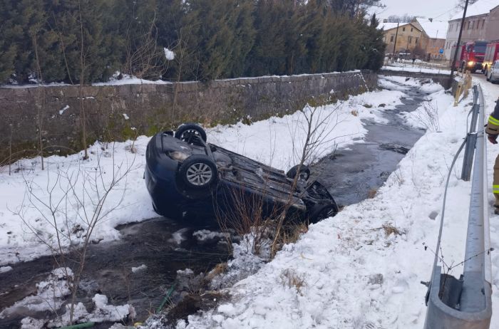 We wtorkowe popołudnie policjanci dostali zgłoszenie, że w Złotym Stoku spod marketu został skradziony samochód. Właściciel Golfa poszedł na zakupy, a gdy wyszedł ze sklepu już nie było jego samochodu. - Policjanci natychmiast pojechali na miejsce. Gdy zbliżali się do Złotego Stoku zauważyli opisany samochód. Włączyli sygnały świetlne i dźwiękowe i nakazali kierującemu zatrzymać się. Kierowca nie reagował, zaczął uciekać w kierunku Kłodzka, a podczas ucieczki zajeżdżał drogę policjantom. Po przejechaniu kilku kilometrów stracił panowanie nad samochodem i w okolicach miejscowości Mąkolno wjechał do rzeczki i przewrócił pojazd na dach. Policjanci natychmiast wyciągnęli kierowcę i pasażera z tego samochodu. Na szczęście nikomu nic się nie stało - relacjonuje Ilona Golec z ząbkowickiej policji.