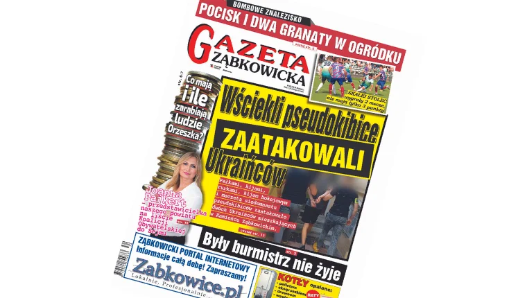 Temat z okładki: „Wściekli pseudokibice zaatakowali Ukraińców”. Pałkami, kijami, rurkami, kijem hokejowym i maczetą siedemnastu pseudokibiców zaatakowało dwóch Ukraińców mieszkających w Kamieńcu Ząbkowickim.