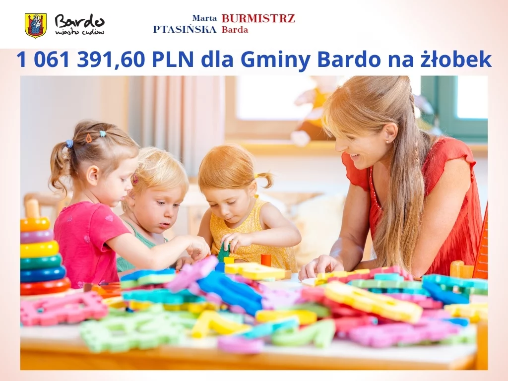 Gmina Bardo. Zrealizowanie tego programu, prowadzonego przez Ministerstwo Rodziny, Pracy i Polityki Społecznej, umożliwi utworzenie miejskiego żłobka, który zaoferuje 15 miejsc dla najmłodszych mieszkańców naszej gminy. Dzięki temu lokalizacja żłobka w Bardzie, a nie w Przyłęku, wydaje się bardziej korzystnym rozwiązaniem. Umożliwi to również zachowanie przedszkola w Przyłęku, co z pewnością przyczyni się do lepszej opieki nad małymi dziećmi.