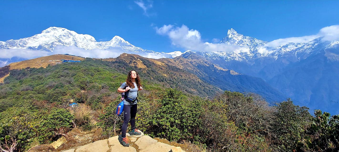 Nieskromnie powiem, że czułam się nieprzeciętnie w Himalajach. Po pierwsze - poprzez pandemię najczęściej byłam jedynym turystą zarówno na szlakach, jak i w hotelach i campach. Nepalczycy, którzy, mają hoteliki i/lub restauracje, i którzy od roku nie mają dochodów, badali mnie wdzięcznym i pełnym nadziei wzrokiem i z ogromnym zainteresowaniem pytali skąd jestem. Po drugie kiedy wędrowałam po pustych himalajskich szlakach, co trwało 11 dni, czułam się naprawdę wyjątkowo i zastanawiałam się, czym sobie na to zasłużyłam. To niezwykłe uczucie. W 10 dniu zdobyłam mój najwyższy punkt Mardi Base Camp, który jest na wysokości 4500 m.n.p.m. Ciężko wyrazić uczucia i emocje, które mi towarzyszyły w tym dniu. Od zawsze kochałam góry, biegiem i spacerkiem, nocą, dniem, ale dopiero w Himalajach okazało się jak bardzo mocno. Nasz szlak wiódł ostrą i często niebezpieczną granią. Świadomość wysokości na jakiej jestem, widok na białe ogromne szczyty m.in. Annapurna (7219) i Fishtail (6993) i wąska dróżka, gdzie po jednej stronie ma się stromą przepaść zimową, a po drugiej - wiosenną o łagodniejszym nachyleniu, sprawiły, że czułam się z jednej strony malutka i bezradna, a z drugiej wypełniona tak ogromną wdzięcznością za to doświadczenie, tak ogromna przez to, że obdarowałabym tym uczuciem chyba cały świat. I ta cisza, która naprawia duszę. Tak, to była wdzięczność – nie do opisania.