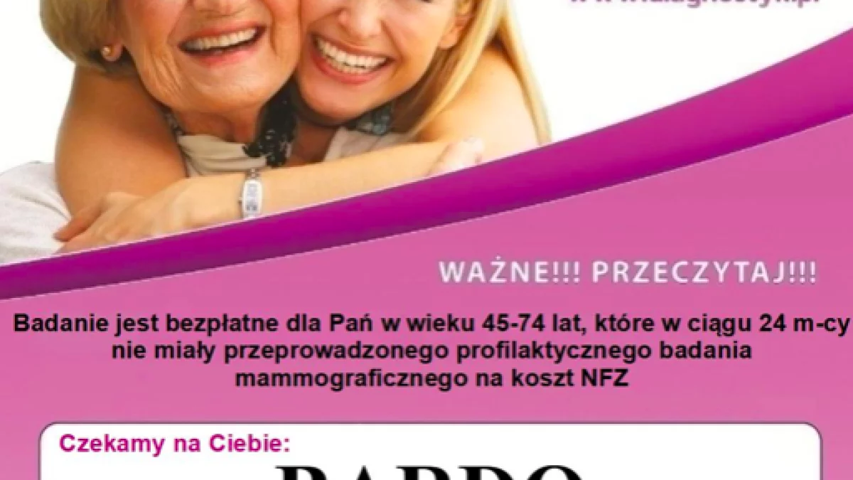 Już 25 sierpnia w Bardzie odbędą się bezpłatne badania mammograficzne dla kobiet w wieku 45–74 lat. Akcja jest częścią programu profilaktyki raka piersi finansowanego przez Narodowy Fundusz Zdrowia (NFZ). To doskonała okazja, aby zadbać o swoje zdrowie i mieć pewność, że wszystko jest w porządku.