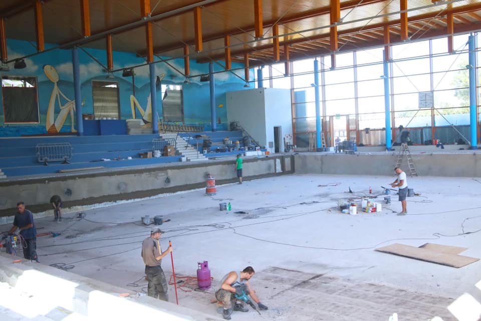 Od 24 sierpnia robotnicy pana Daniela zdemontowali płytki ścienne i podłogowe na obszarze 730 m kw. dużego basenu sportowego, a następnie zabrali się za kolejne zadania: wykonanie równań powierzchni i warstwy izolacyjnej, wykonanie nowego podłoża glazurniczego w obszarze ścian, posadzki i koryt przelewowych, wykonanie fug w niecce basenowej i fug silikonowych, a także wymiana wpustów odwodnieniowych, kratek przelewowych oraz pochwytów lin basenowych.