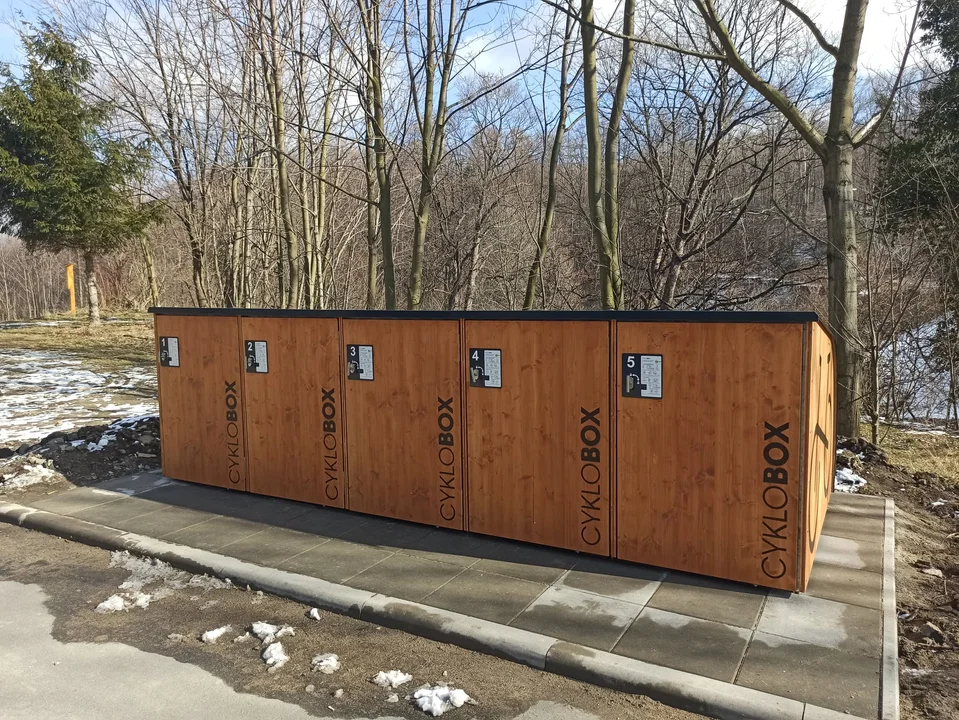 Złoty Stok. Na początku marca przy ścieżce rowerowej, łącznik ul. St. Staszica w kierunku ul. Złotej, stanęły Cykloboxy, które pełnią funkcję czasowego schowka dla rowerów.