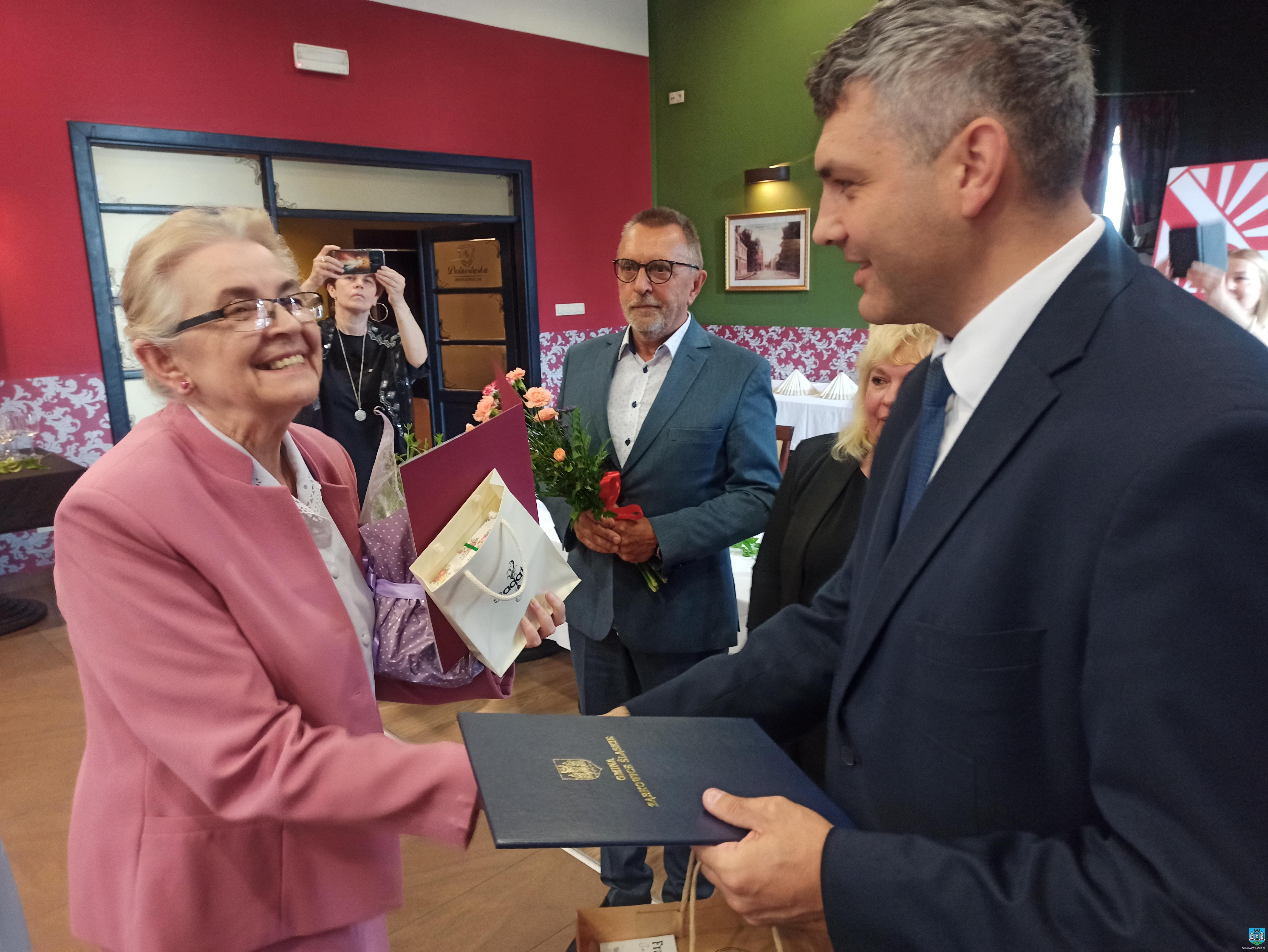 Na jubileuszu obecni był również Marcin Orzeszek, Burmistrz Ząbkowic Śląskich, który złożył na ręce Prezes Oddziału ZNP gratulacje za dotychczasową działalność, współpracę z Urzędem Miejskim i przygotowanie uroczystości.