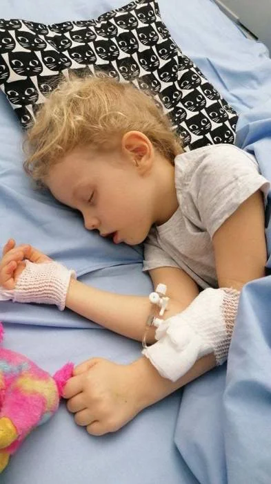 Hania od momentu biopsji nie wstawała z łóżka. Bolała ją noga oraz głowa. Przez półtora tygodnia była na silnych lekach przeciwbólowych podłączona do pompy 24/h.