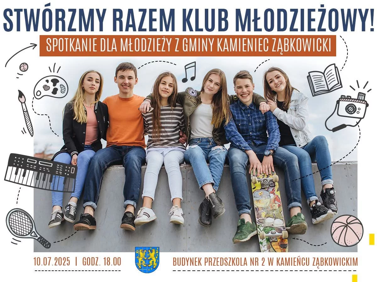 Już 10 lipca o godzinie 18.00 w budynku Przedszkola nr 2 w Kamieńcu Ząbkowickim odbędzie się wyjątkowe spotkanie dla młodzieży w wieku 13–19 lat. Celem jest stworzenie Klubu Młodzieżowego – miejsca, które powstanie od zera, zaplanowanego i prowadzonego przez samych młodych ludzi.