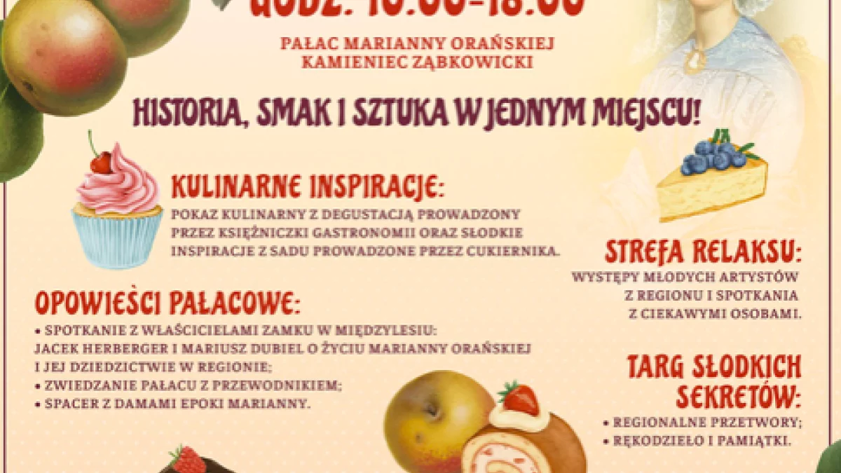 Już 5 lipca, w magicznej scenerii Pałacu Marianny Orańskiej w Kamieńcu Ząbkowickim, odbędzie się niezwykłe wydarzenie, które połączy historię, sztukę i... słodycze! Festiwal „Słodkie Tajemnice Marianny", zaplanowany w godzinach 10:00–18:00, to idealna propozycja na wakacyjny weekend dla rodzin z dziećmi, miłośników historii i wszystkich łasuchów.