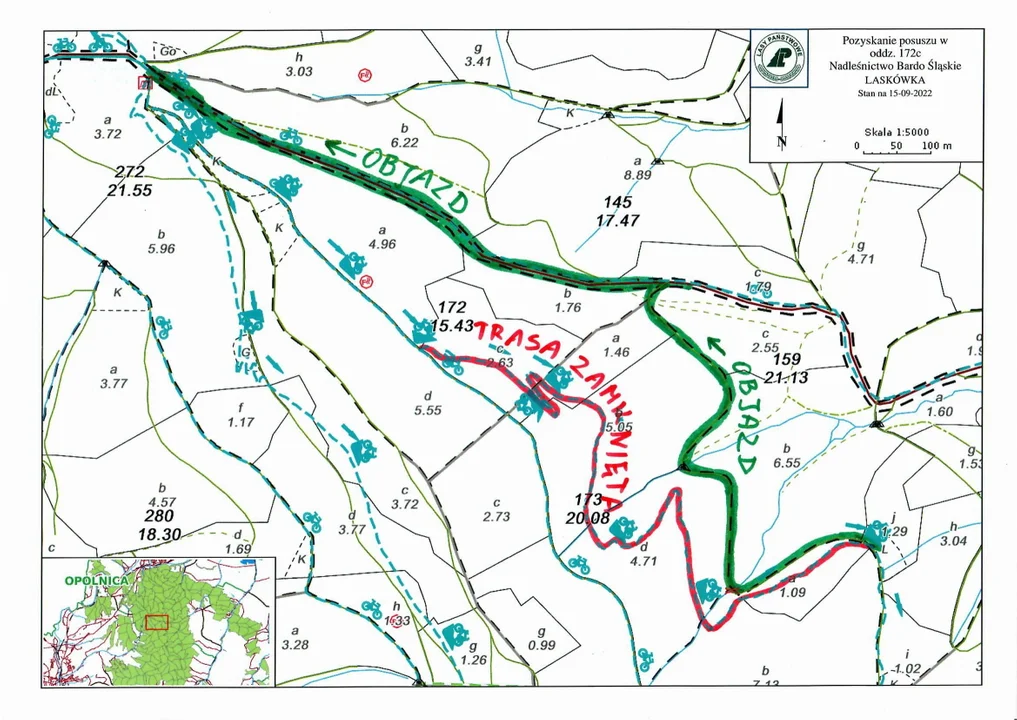 Nadleśnictwo Bardo Śląskie informuje, że w terminie od 29 września do 7 października czasowo zostanie zamknięty odcinek ścieżki rowerowej singieltrack w leśnictwie Laskówka (oddział 172 c). Powodem utrudnień są prace związane z pozyskaniem drewna.
