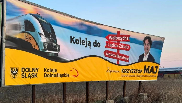 Przy drodze krajowej nr 35 na krótkim odcinku między Świdnicą a Świebodzicami są trzy reklamy, gdzie wzrok przyciąga roześmiany Krzysztof Maj - pisze Agnieszka Szymkiewicz, redaktor naczelna Swidnica24.pl. - Czy to zadowolony z przywróconych połączeń pasażer? Na pewno, ale przede wszystkim członek zarządu województwa dolnośląskiego, aktywny działacz Bezpartyjnych Samorządowców, którzy 9 lutego zarejestrowali w PKW swój komitet wyborczy w wyborach samorządowych, a 19 lutego podczas konferencji prasowej we Wrocławiu ogłosili swój start. Tylko że o tym ani słowa nie ma na banerach ani w kampanii, finansowanej przez Koleje Dolnośląskie, spółkę należącą do samorządu Dolnego Śląska - dodaje.