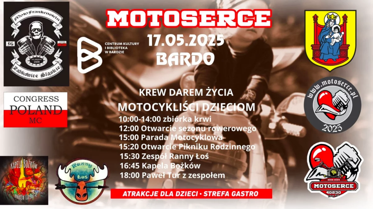 Już 17 maja w Bardzie odbędzie się wyjątkowe wydarzenie – Motoserce 2025, które połączy pasję do motocykli z pomocą potrzebującym. Organizatorem imprezy jest Centrum Kultury i Biblioteka w Bardzie we współpracy z klubem motocyklowym MotoFrankenstein FG Ząbkowice Śląskie.