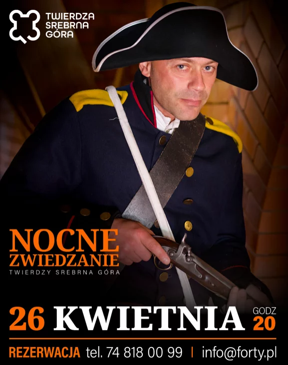 Już jutro (sobota, 26 kwietnia) o godzinie 20:00 Twierdza Srebrn Góra niezapomniane Nocne Zwiedzanie. To wyjątkowa okazja, aby zobaczyć zabytkowe mury tego historycznego obiektu w zupełnie nowym świetle – dosłownie!