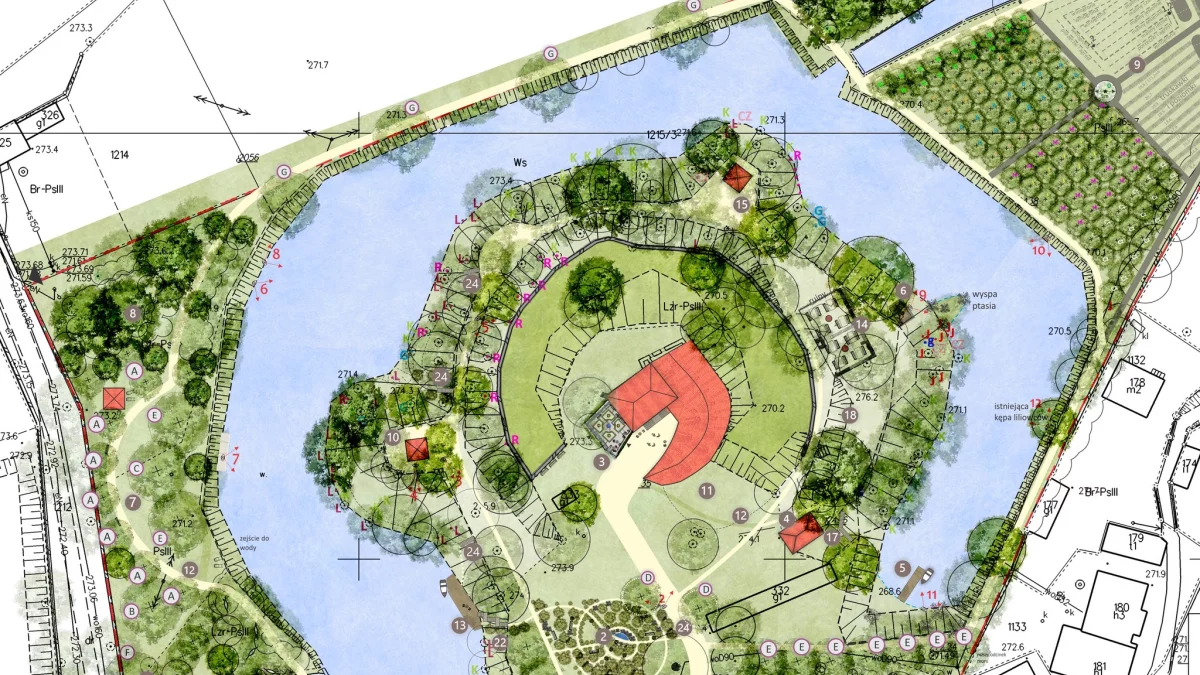 Jednym z elementów ma być sad, który wprowadzi do parku naturalny charakter i nawiąże do tradycyjnych form zagospodarowania przestrzeni. Przewidziano także przystań dla łódek, co może sprawić, że miejsce stanie się jeszcze bardziej atrakcyjne i dostępne dla osób odwiedzających park. Ważnym elementem będą również wyznaczone ścieżki, które uporządkują ruch i pozwolą na wygodne korzystanie z terenu, a jednocześnie nie zaburzą jego naturalnego charakteru.