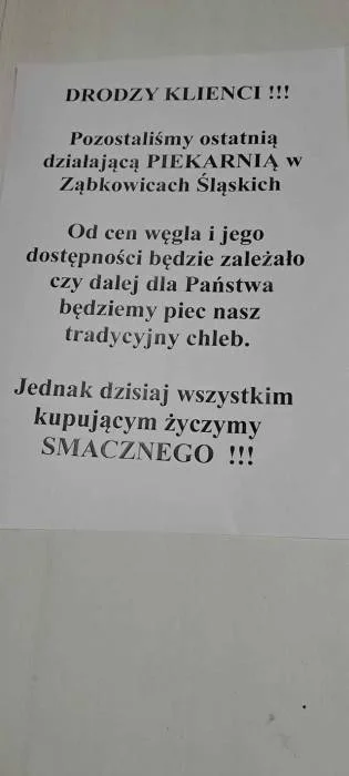 "Od cen węgla i jego dostępności będzie zależało, czy dalej dla Państwa będziemy piec nasz tradycyjny chleb" - czytamy na kartce. Dlaczego ją powieszono?
