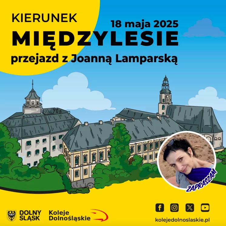 Miłośnicy historii, niezwykłych miejsc i kolejowych przygód mają powody do radości. Już 18 maja szykuje się wyjątkowa podróż pociągiem Kolei Dolnośląskich z Wrocławia do Międzylesia, której niepowtarzalny klimat zapewni Joanna Lamparska — znana dziennikarka, autorka książek i odkrywczyni tajemnic Dolnego Śląska.