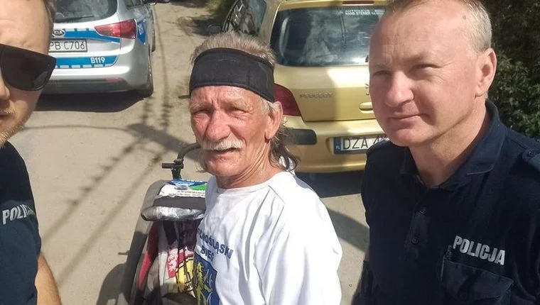 Sierżant sztabowa Barbara Deryło w czwartek, 29 czerwca wracając z pracy zauważyła biegnącego mężczyznę. Zaciekawiło ją, że w wózku, z którym biegł Franek (jak przedstawia się na Facebooku), siedział pies Dino.