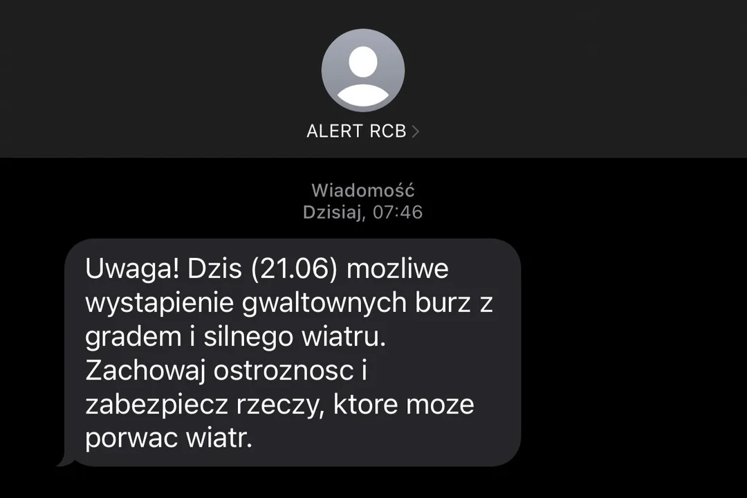Ostrzeżenie meteorologiczne obowiązuje dzisiaj, w środę (21 czerwca) od godz. 11:00 do godz. 23:00. Warto zabezpieczyć rzeczy, które mogą zostać zabrane przez wiatr.