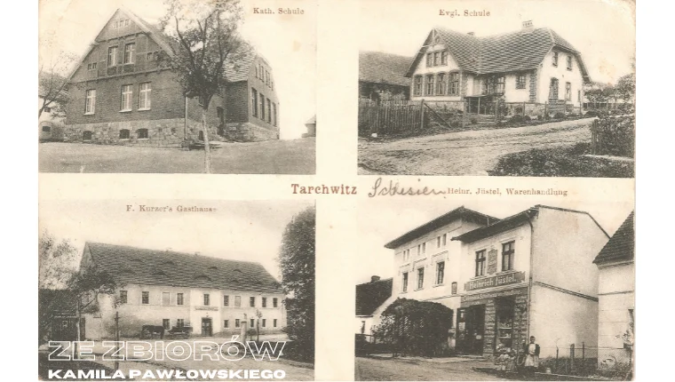 Przed II wojną światową funkcjonowało w niej wiele ważnych instytucji. Na dzisiejszej karcie pocztowej ukazano budynek szkoły katolickiej, budynek szkoły ewangelickiej, gospodę oraz sklep.