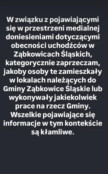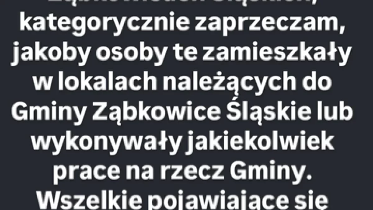 Burmistrz stanowczo dementuje te doniesienia. – Kategorycznie zaprzeczam, jakoby osoby te zamieszkały w lokalach należących do Gminy Ząbkowice Śląskie lub wykonywały jakiekolwiek prace na rzecz Gminy – podkreślił w oficjalnym oświadczeniu.