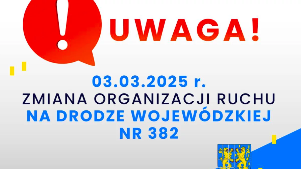 W poniedziałek, 3 marca w związku z pracami remontowymi, wprowadzona została tymczasowa organizacja ruchu na drodze wojewódzkiej nr 382 na odcinku Byczeń – Paczków.