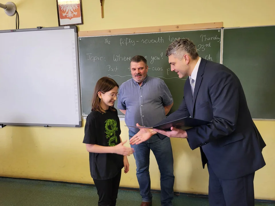 Ząbkowice Śląskie. W czwartek, 23 marca, burmistrz Marcin Orzeszek spotkał się z uczennicą Szkoły Podstawowej nr 3 w Ząbkowicach Śląskich - Roksaną Skubałą. Piątoklasistka odebrała z rąk burmistrza gratulacje za zdobycie I miejsca w Ogólnopolskim Konkursie Plastycznym na projekt znaczka Rok Mikołaja Kopernika.