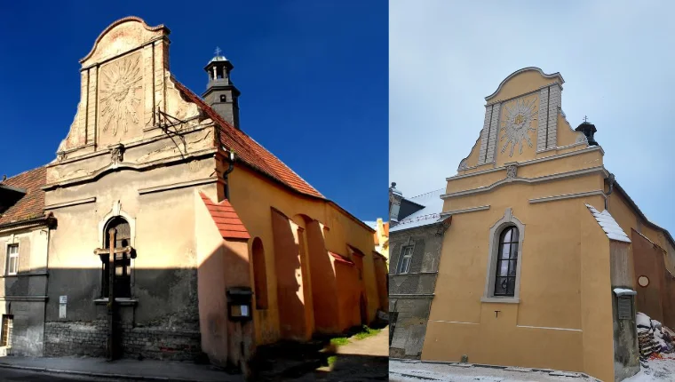 Co teraz dzieje się w zabytku? Nowy krzyż czeka na montaż. Oryginalny krzyż czeka na decyzję konserwatora. Co rusz odkrywane są kolejne freski.