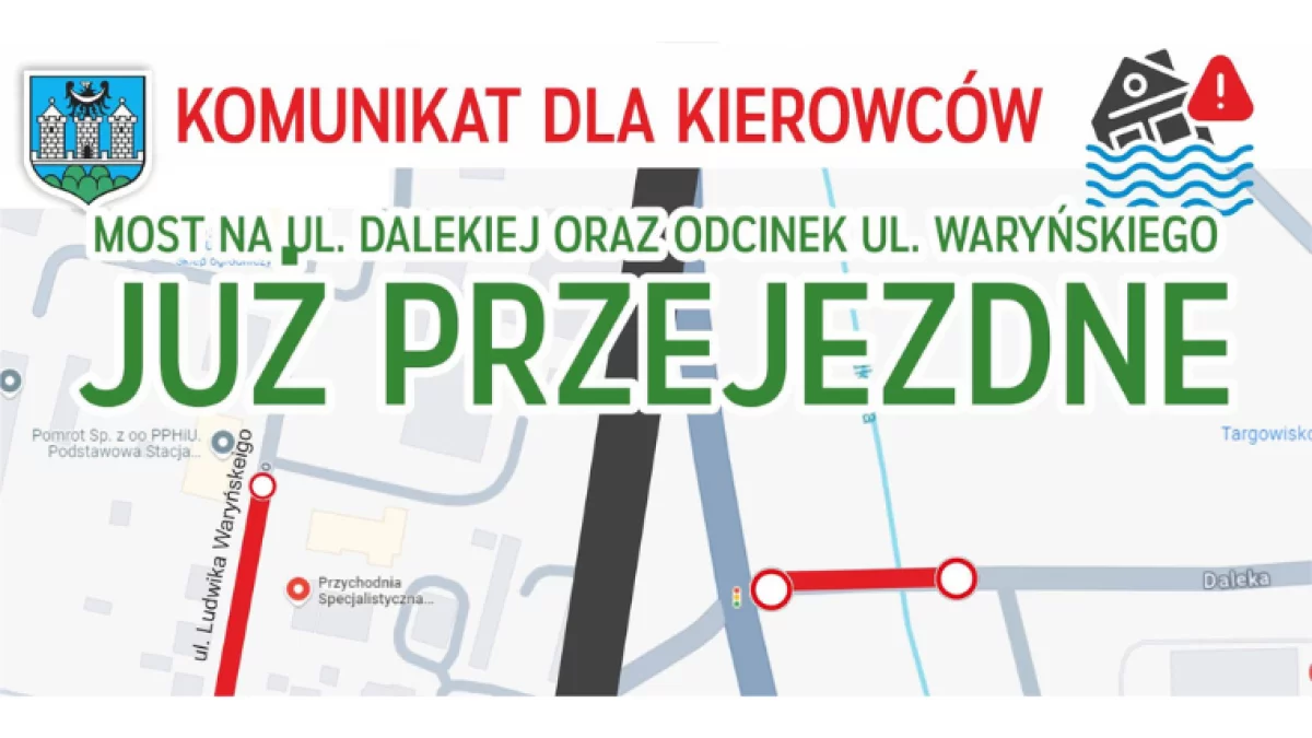 Odcinek ul. Waryńskiego na długości od skrzyżowania z ul. Traugutta do wjazdu na posesję budynku nr 18A-B oraz odcinek ul. Dalekiej na długości mostu na rzece Jadkowa, przy skrzyżowaniu z DK8 są już przejezdne.