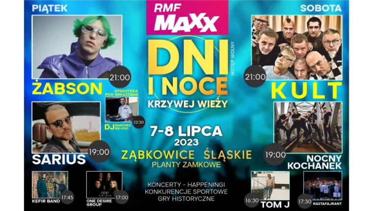 Dziś zagrają: One Desire Group, Kefir Band, Sarius, Żabson i DJ Sanchez En Vivo. Jutro: Tom J, Rastafajrant, Nocny Kochanek i Kult. Jutro też wiele atrakcji dla dzieci wokół Krzywej Wieży – m.in. spotkanie z alpakami, warsztaty ceramiczne i warsztaty magii z iluzjonistą. Pełny program – KLIKNIJ TUTAJ.
