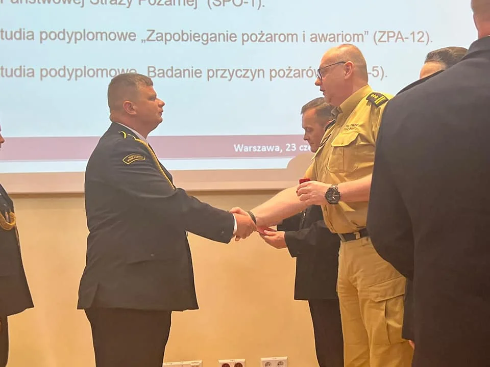 Ząbkowice Śląskie. Starszy inspektor sztabowy ds. operacyjno-szkoleniowych asp. Mirosław Gomółka, będący równocześnie oficerem prasowym Komendanta Powiatowego Państwowej Straży Pożarnej w Ząbkowicach Śląskich, odebrał dziś dyplom ukończenia studiów podyplomowych na Szkole Głównej Służby Pożarniczej w Warszawie.
