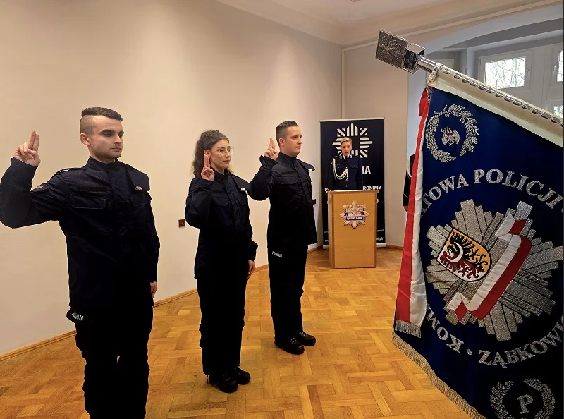W czwartek, punktualnie o godzinie 12:00, w Komendzie Powiatowej Policji w Ząbkowicach Śląskich odbyła się uroczystość ślubowania trzech nowych policjantów. W wydarzeniu uczestniczyli Komendant Powiatowy Policji podinspektor Tomasz Grzesiak oraz I Zastępca Komendanta Powiatowego Policji w Ząbkowicach Śląskich komisarz Tomasz Kupiec.